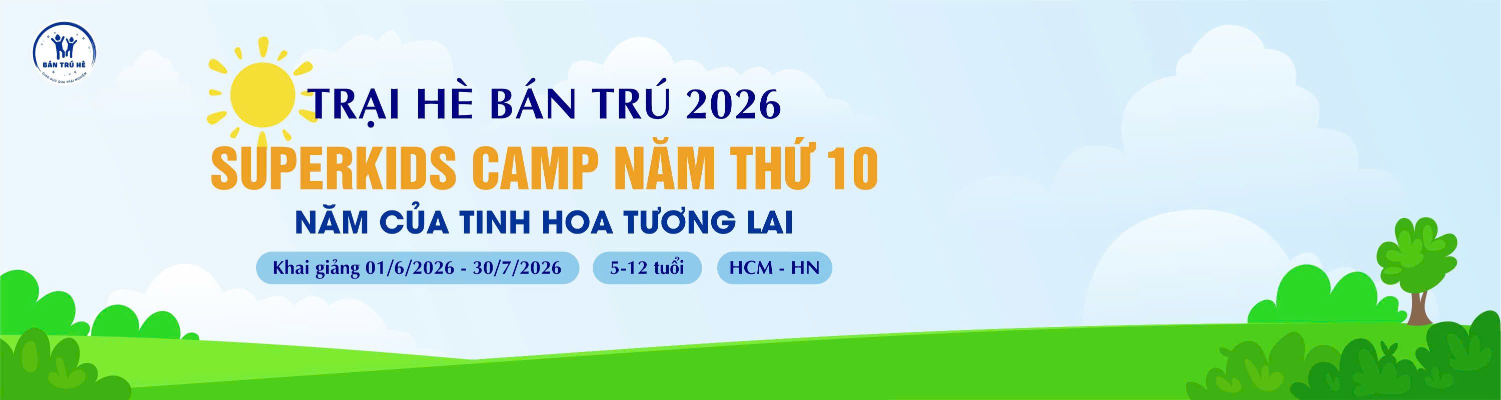 Được thành lập từ năm 2017, Bán trú hè 2025 là Chương trình bán trú được Bantruhe.vn xây dựng đến nay với đầy đủ các hoạt động phát triển toàn diện cho các bạn nhỏ trong độ tuổi từ 5 - 14 tuổi. Với các chương trình dành riêng cho từng độ tuổi: Hành trang vào lớp 1; Bán trú hè cho các bạn từ 5 tuổi đến 11 tuổi; Trại hè nữ sinh; Trải nghiệm sáng tạo.