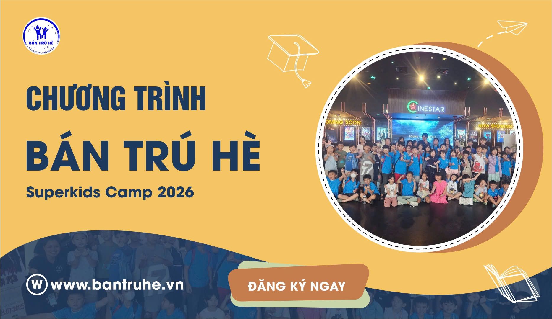 Trại hè bán trú 2026 là sự kết hợp cao nhất của các chương trình giáo dục chất lượng cao, tổ chức linh hoạt với các chương trình trải nghiệm, câu lạc bộ. Đặc biệt Superkids camp là SÂN CHƠI LỚN trong hè với 4 cuộc thi dành cho các con từ 5 - 12 tuổi tại Hà Nội & TP HCM.